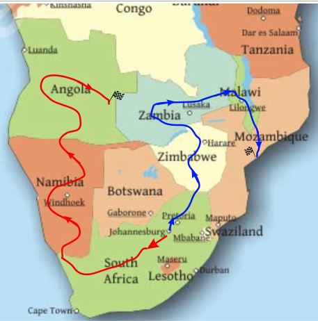 Season 1 equals 13 x 48 minutes plus 2 behind-the-scenes. Locations will include the following countries – South Africa, Namibia and ending in a non disclosed location in Angola (Marked in Red)